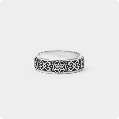 Кольцо из серебра с орнаментом, в центре которого находится символ «Северная Звезда». Северная Звезда символизирует Полярную звезду, которая вела моряков по верному курсу, а путникам не давала сбиться с пути.