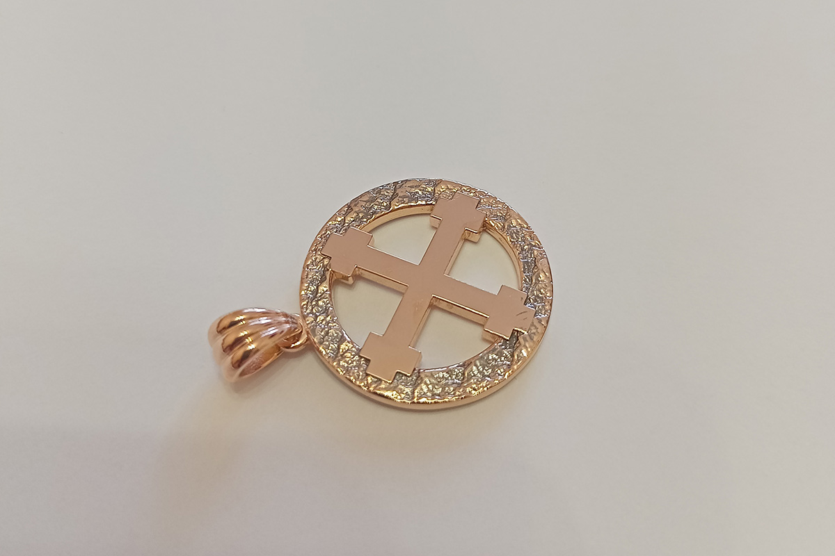 Двухсторонний оберег Алатырь-Коловрат с Солнцем из золота